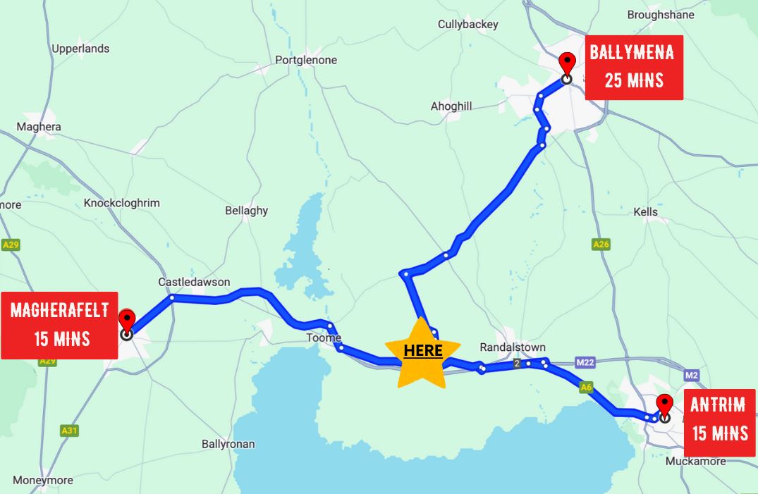 Private tuition takes place from my home on the Moneynick Road, Randalstown. This is easily accessible from the M2 RANDALSTOWN WEST exit. Check out the map bellow!